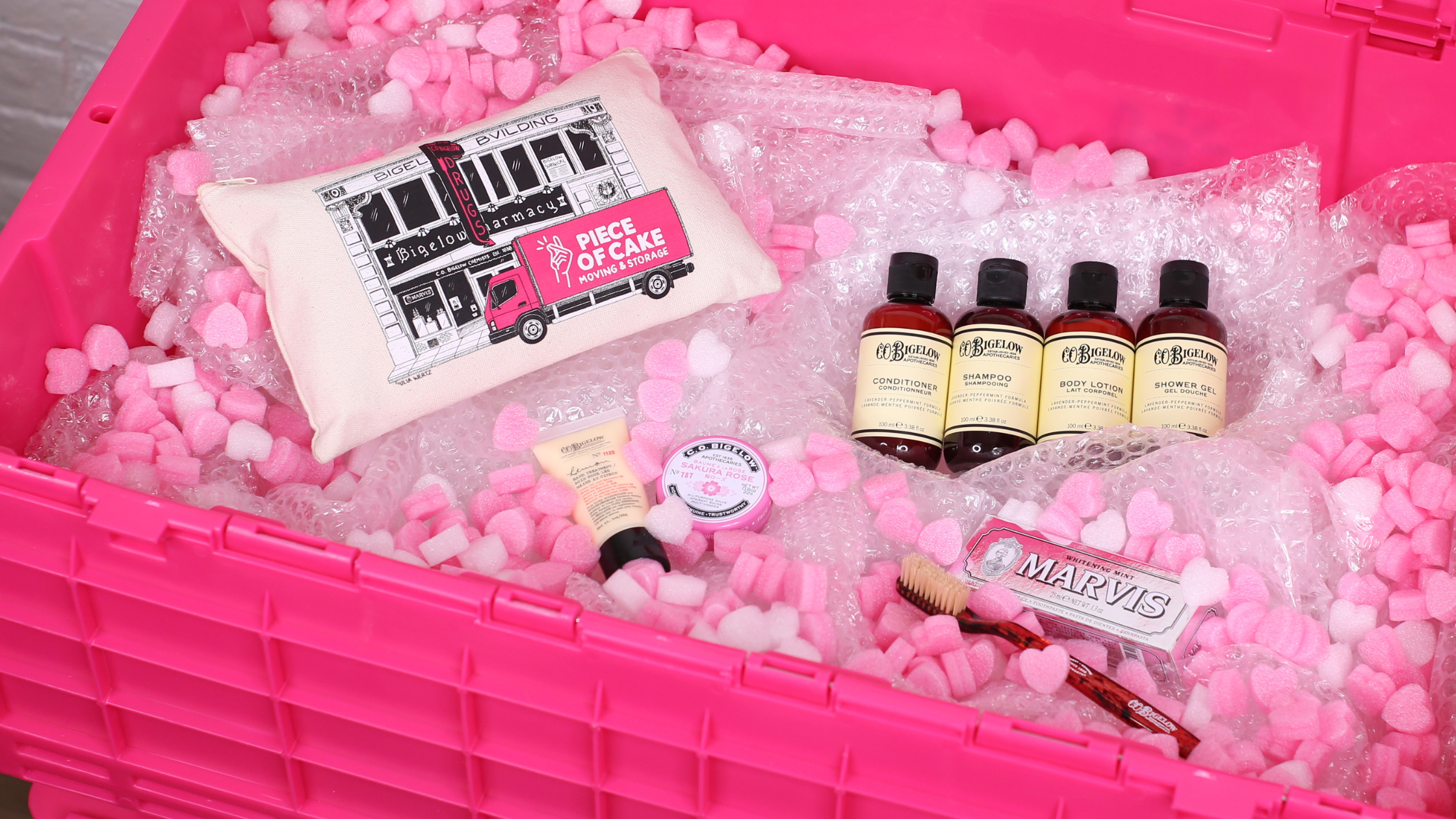 C.O. Bigelow and Piece of Cake Moving have come together over a shared appreciation for all the small details that make a big difference. Nearly two centuries of apothecary staples meet a modern understanding of what moving day should feel like—luxurious, effortless, and designed entirely around you.